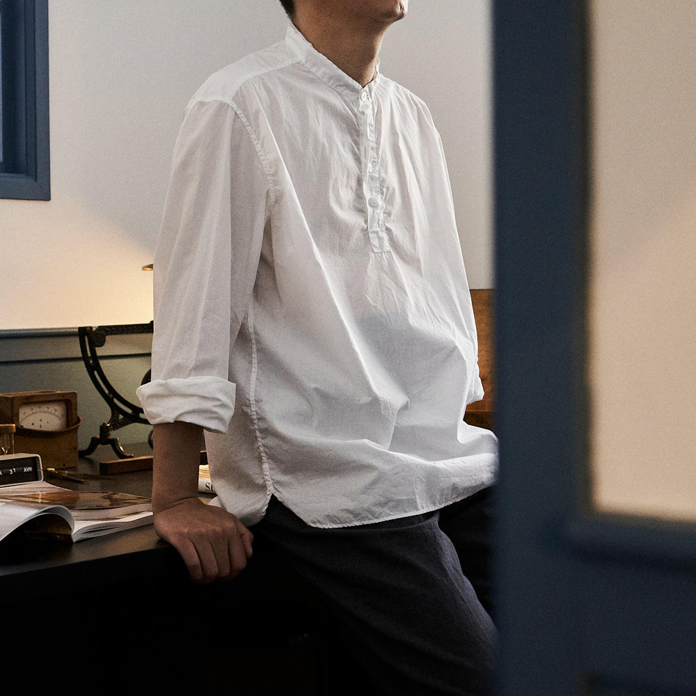 Shirt:Bergfabelfarmer pullover shirt/stand collar SOFT WHITE